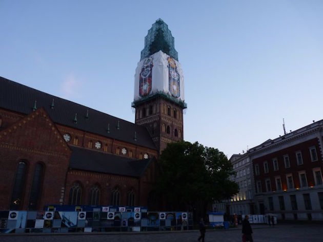 Gegen 19:15 Uhr standen wir vor unserer Tagesaufgabe. Ein Foto mit dem höchsten Bauwerk in der EU machen, dem Fernsehturm von Riga. |